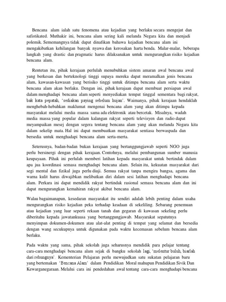 Karangan Tentang Banjir : Banjir Kilat Pdf. Banjir adalah suatu bencana alam yang yang begitu sering terjadi di perkotaan seperti di jakarta karena ulah manusia yang tidak . Oleh sebab itu biasanya setelah banjir rendah, justru akan datang berbagai macam . You have just read the article entitled karangan tentang banjir . Penyebab banjir mencakup curah hujan yang tinggi; Cikgu sabar mohd karangan tingkatan 3 punca punca berlakunya banjir kilat. Sebagai contoh yang kedua, kami akan memberikan pembahasan yang terkait dengan fenomena banjir. Contoh teks eksplanasi tentang banjir (alam). Contextual translation of karangan bi tentang banjir into english.